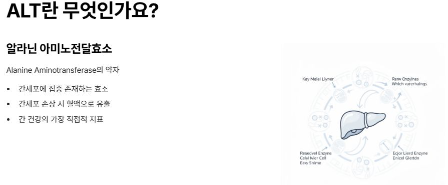 alt 수치. 건강검진 결과에서 ALT 수치가 높게 표시되면 “간이 안 좋은 건가?”라는 걱정이 먼저 듭니다. ALT는 간세포 손상과 가장 밀접한 지표라, 의미를 정확히 알고 해석하는 것이 중요합니다. 아래 내용을 끝까지 보면 alt 수치가 무엇을 말해주는지, 언제 주의해야 하는지 스스로 확인하세요