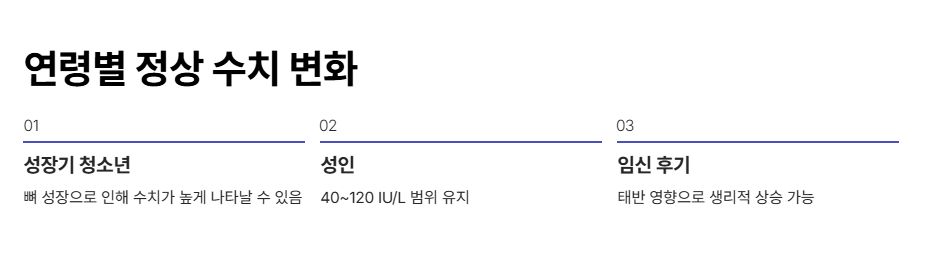 성장기 청소년이나 임신 후기에는 생리적으로 ALP가 높게 나올 수 있습니다.