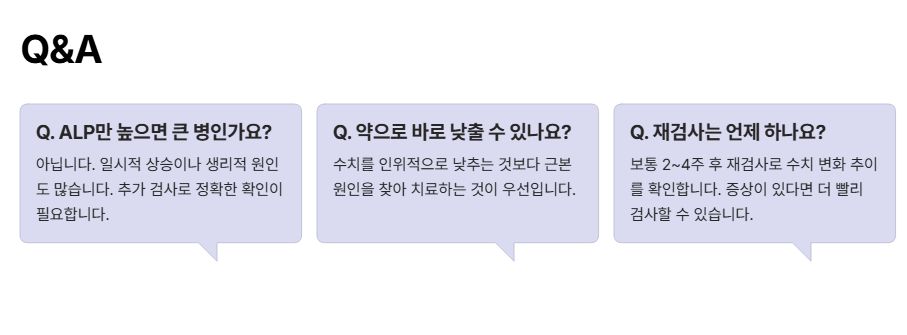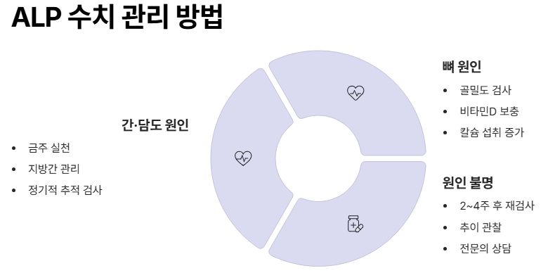 쉽게 말하면, ALP는 담즙 흐름이나 뼈 대사가 원활한지 보여주는 수치입니다.