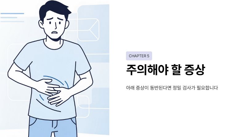 아래 증상이 함께 있다면 정밀 검사가 필요할 수 있습니다.