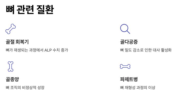 골절 회복기, 골다공증, 골종양, 파제트병 등에서도 ALP 수치가 높아질 수 있습니다.