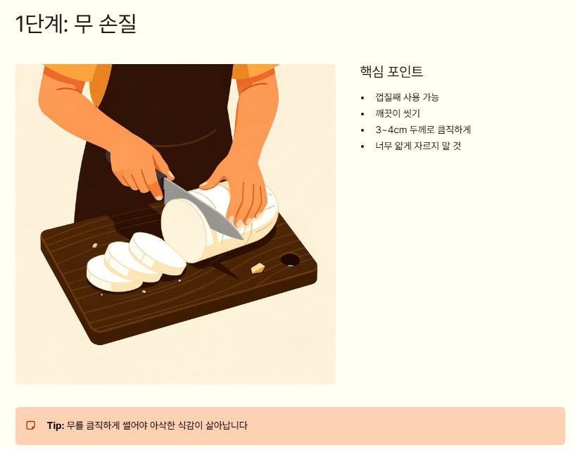• 무를 너무 얇게 썰지 않기