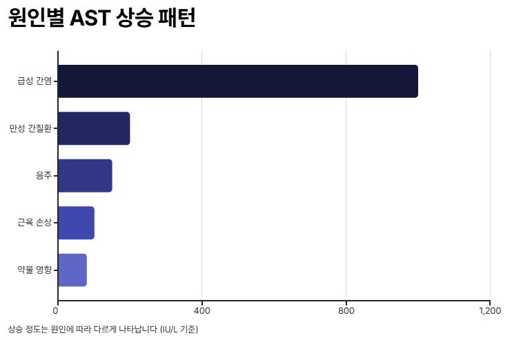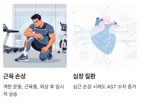 격한 운동, 근육통, 외상 후에도 AST가 일시적으로 상승할 수 있습니다.