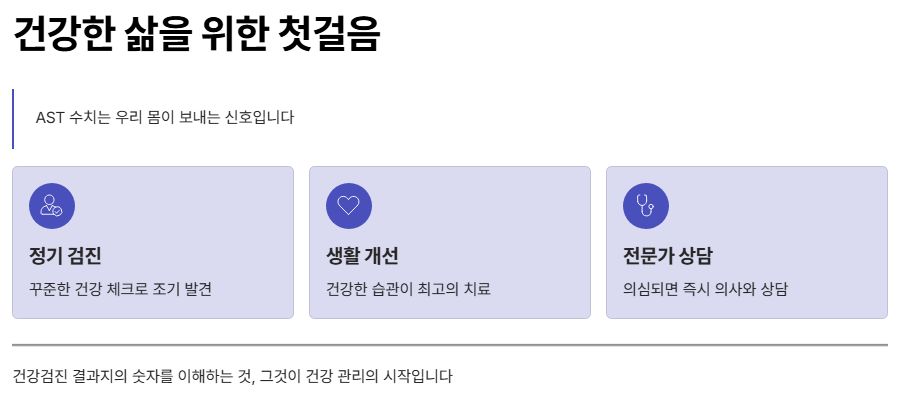 정리하면, AST 수치는 간 상태를 보여주는 중요한 지표이지만 단독으로 해석하면 오해하기 쉽습니다. ALT와 함께 보고, 증상과 생활습관까지 종합해 판단해야 합니다. 수치가 높게 나왔다면 겁내기보다, 지금 몸이 보내는 신호로 받아들이고 차분히 관리하는 것이 가장 현실적인 대응입니다.