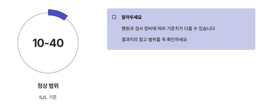 • 성인 기준: 약 10~40 IU/L